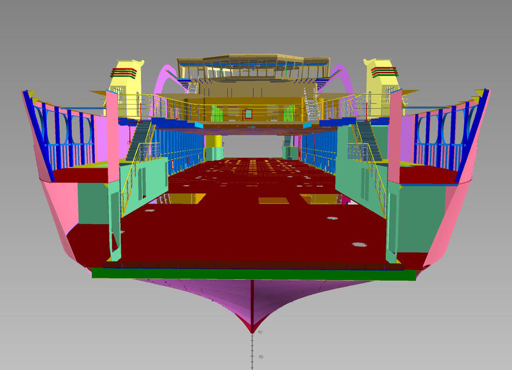 Based on the ship's construction drawings and the supervision of the construction work, we were able to make a 3D model of the ship. The 3D model consists of components that contain useful information about its dimensions, weight and position.