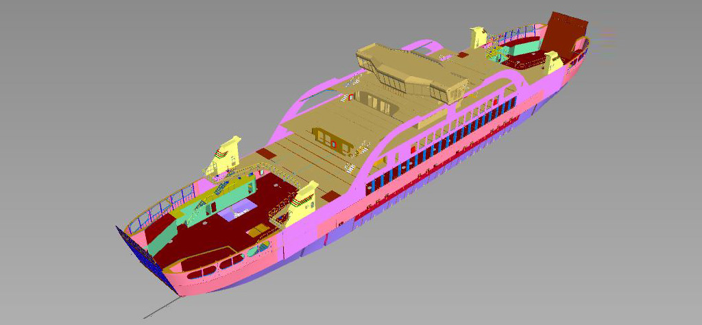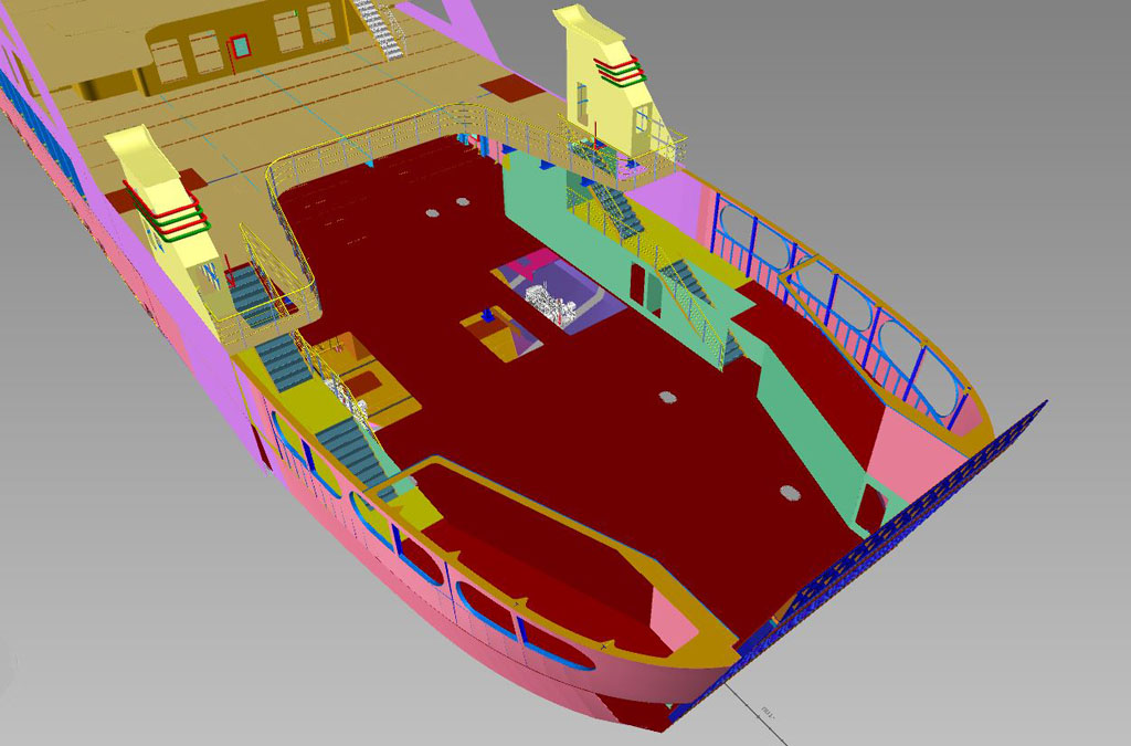 Based on the ship's construction drawings and the supervision of the construction work, we were able to make a 3D model of the ship. The 3D model consists of components that contain useful information about its dimensions, weight and position.